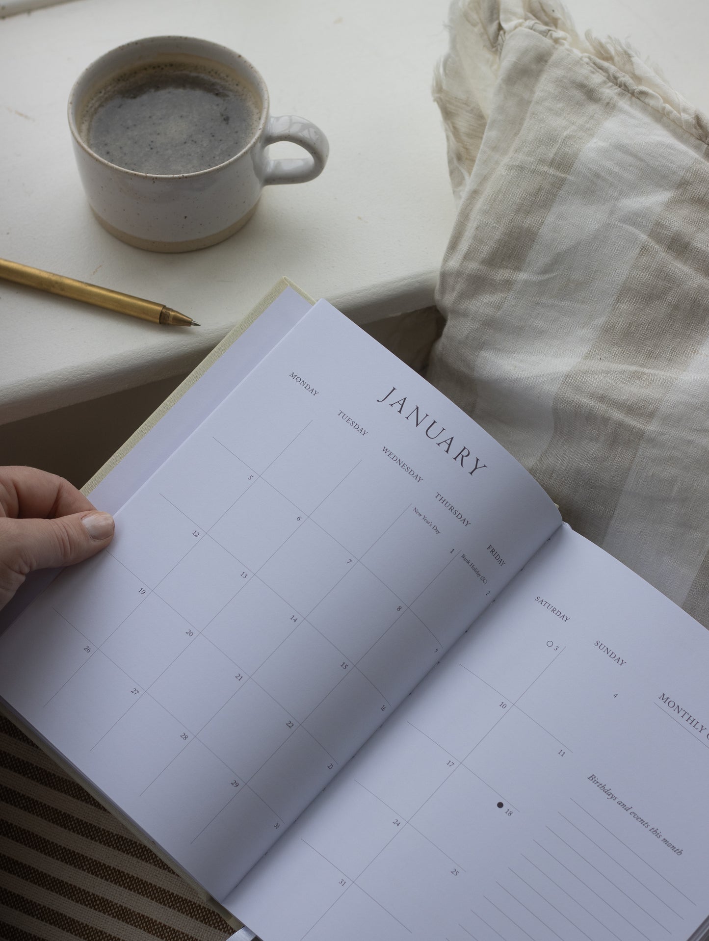 • A weekly double page spread with a single to do list and a blank page for your musings and plans